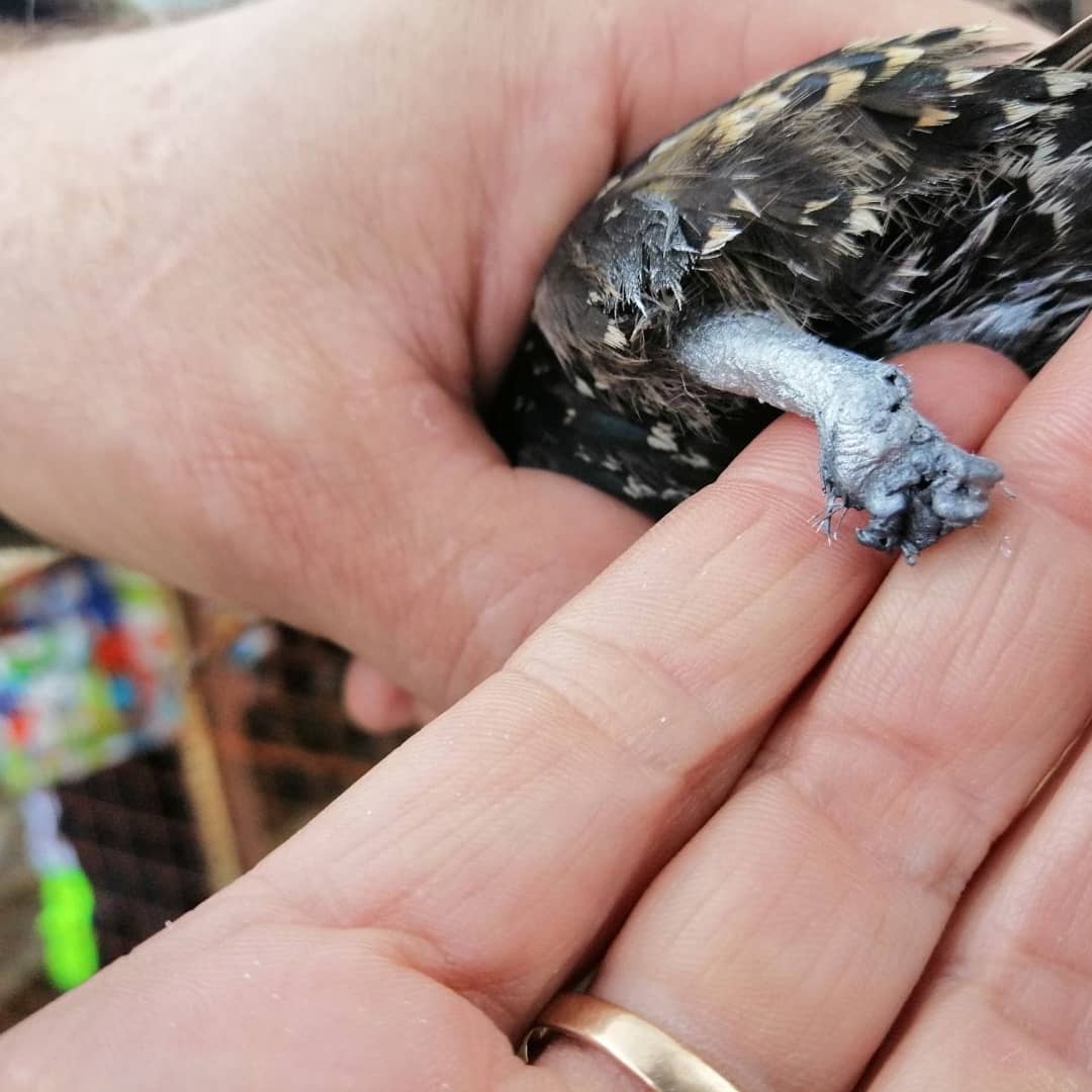 Птице оказали помощь, лапку почистили, кожу подшили и запечатали спреем вторая кожа, назначен курс антибиотиков и противовоспалительных препаратов, а пока лапка заживает, птица учится жить без части лапки.