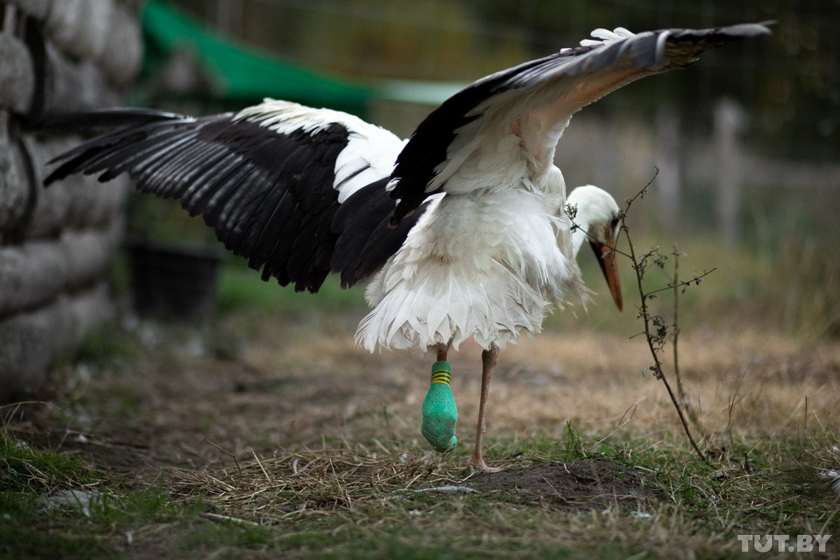 Аист инвалид из контактного зоопарка